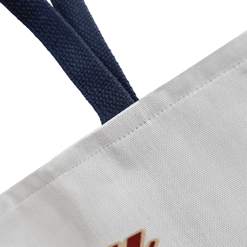 Your tote bag will be custom made upon order. You can expect a professionally printed design on both sides, making this a piece that can be treasured for a lifetime. Further your customization by choosing between 5 handle colors.